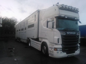 I’ve seen photos of this County Donegal registered V8 before coming in or out if Dover. I have to say that livestock is an area of transport that I know nothing about so why the choice of a 4×2 over a 6×2?? Some one will tell me I’m sure. Other than that who ever owns deserves a bravery medal for choosing a white truck and trailer to transport dirty cows from dirty farms but then again I guess that’s why the truck is so stunning because it’s not a livestock truck colour it’s a bit different. I think the trailer is one of those Italian built ones, Pezzaioli?? but again it would be nice if one of you could tell us a bit about livestock trucking.