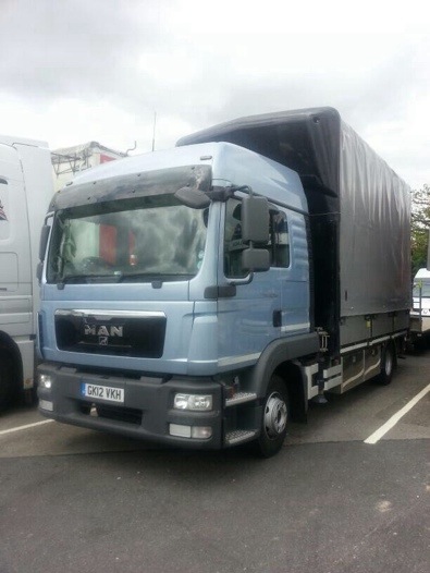Spotted today at Chievely Services on the M4 by @StevieBloke on Twitter. Being the driver of an MAN TGL for vehicle transporters Bestlog and also knowing I’m just a bit of a TGL fan Mr Bloke thought it’d be a good idea to share his find. Great idea! What do we know about this specialist little motor? It’s an LX cabbed TGL, not sure if it’s a sleeper or a crew cab. The chassis has stainless steel lockers mounted down the sides. The body looks to be a pretty tall sliding canvas body with drop sides. Between the body and the cab are a pair of stabiliser legs for a small Hiab crane and too finish it off it was towing a tri axle flat trailer. It must be used for installations of some sort but I’ve no idea what. Over to you lot, who knows who’s it is or what it gets up too?? Leave a comment or send me an email; ben@truckblog.co.uk