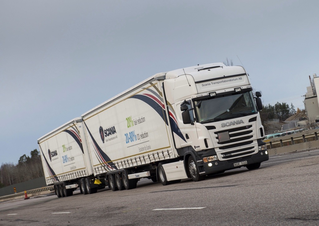 By driving with two full-length trailers, Scania reduces fuel consumption by up to 30 percent with an equivalent reduction in harmful carbon dioxide emissions. Following Scania’s request, the Swedish Transport Agency has now granted permission to operate rigs of 31.5 metres in total length between Södertälje and Helsingborg in Sweden.