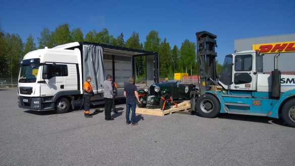 Just a couple of weeks back Steve Marsh and his little MAN were right down South West in Portugal, this week the complete opposite, right up North East in Finland. How do you get a 1931, 4.5 litre supercharged Bentley blower from the UK to Russia for a car rally? I have no idea, but I know you get it as far as Helsinki from where it will be forwarded onto its final destination somewhere in Russia. I’m guessing that although Bentley GH6951 is a regular at all the big car rallies all over Europe, the owners didn’t fancy driving it all the way from Manchester. In true 1980’s fashion, “Who you gonna call??” – Steve Marsh Express!