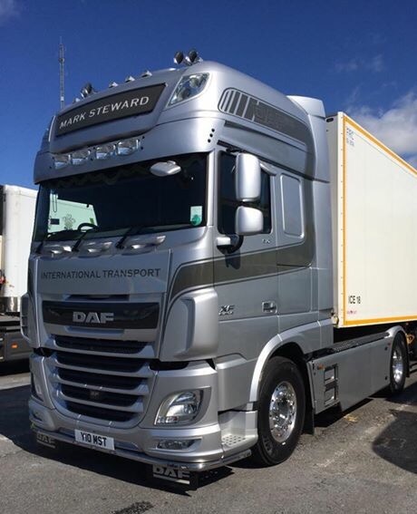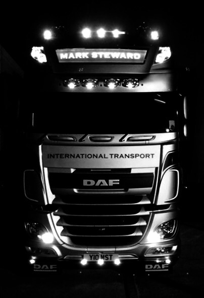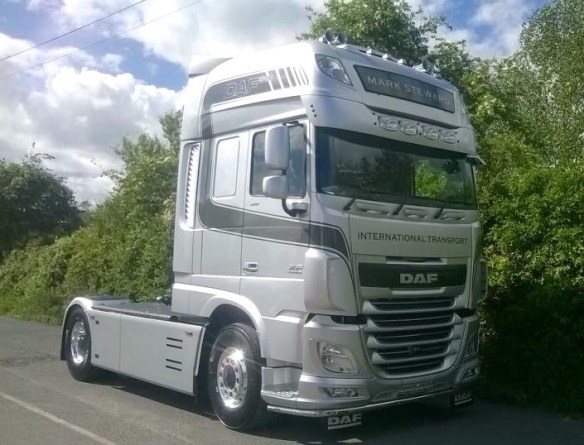 Hopefully most of you will know that I used to be an owner driver myself a good few years back now. Quite often on social media I end up meeting and talking too other owner drivers. I think if you’ve done it you can easily relate to the hardships and pleasures of running your own motor. Mark “Choppy” Steward is one such Owner Driver that I have a few messages with now and again, I can’t tell you how it started but we keep in contact now and again. So I couldn’t help but notice the ordering and arrival of a stunning DAF XF106 Super Space Cab. An owner drivers truck really is the be all and end all, it’s got to be everything a fleet truck is and more, usually a lot smarter as its a representation of yourself and also how people you may be working for see you as a company. If you like the truck is the ambassador to your name if that makes sense. As you will see Marks choice of new truck is a fine one, we all know the big DAF is a great truck to live in and work with and the new Euro VI front end with metallic paint just looks awesome. Over to Mark for full details………