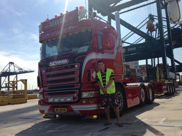 It was good experience to meet somebody that you don’t know,but you share same passion. After a good cooperation, we meet up again in Belgium. He was driving a Scania 164L 580 V8. It was very interesting,a open pipe V8..fantastic expirience. I was in Belgium 1 month,In that time Kjell was transporting containers from Antwerp terminal to benelux countries,France and Germany. Also that was very very big and important experience for me,I learned many new stuffs,meet very nice people,and saw very good showtrucks like Weeda, S.D.G, Ceusters, Vogel etc. In 2014 I was at Lopik Truck Festival…It was first big truckshow for me… First i saw that much good trucks around Europe in one place.