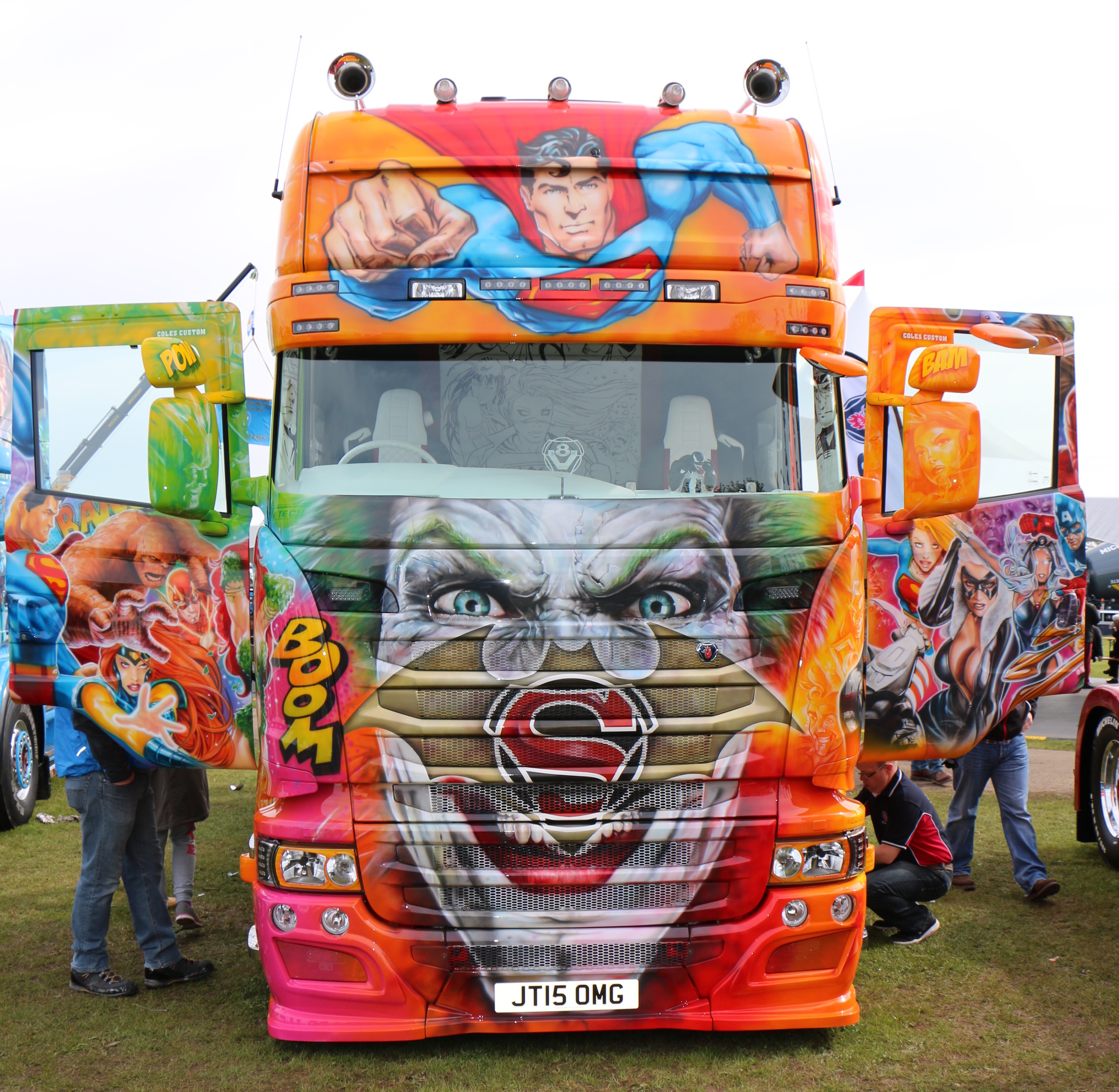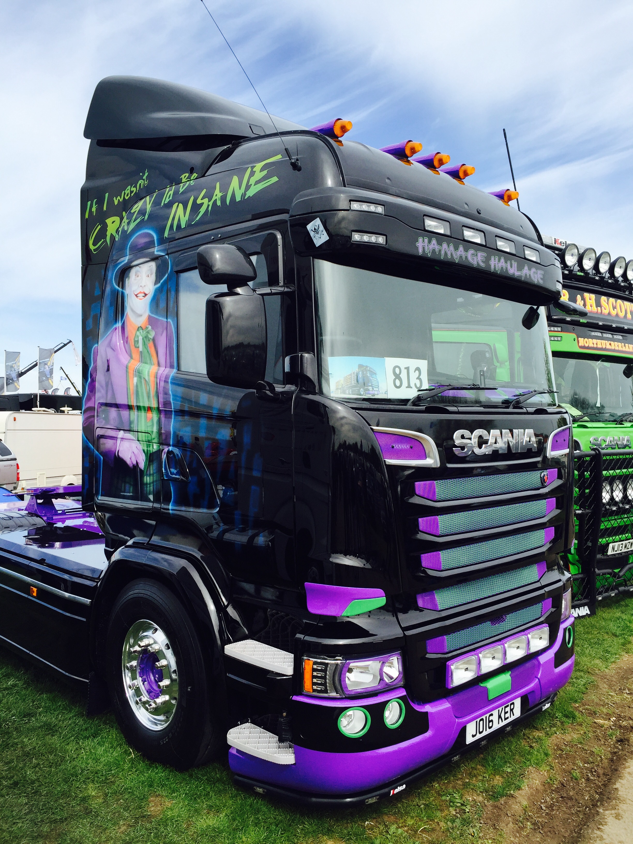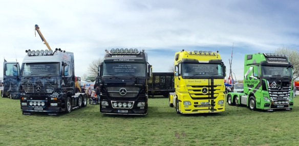 Let’s start with the Superhero truck. Although I don’t really know what to say! There are lots of themed trucks around some which are tasteful, some over the top and just a few that are mind blowing, above mind blowing I don’t know what the best word to use is. Whatever you think is better and more impressive than the beat around will fit. I’ve owned and operated an airbrushed truck and I have to say I don’t think I’d do it again but when you see Superheros I don’t think you can do anything but stand back and admire the work and effort that has been put into creating nothing short of a masterpiece. The paint and artwork puts modern artists to shame, I think this could be airbrush artist Matt’s greatest achievement to date. I’ll say no more as I’ll do a seperate blog on it. All I can say is that there were more new, big money trucks at Peterborough this year than I have seen in I don’t know how many years. Big Volvos, Tcab Scanias, custom Mercedes-Benz, well painted DAFs, just all sorts.
