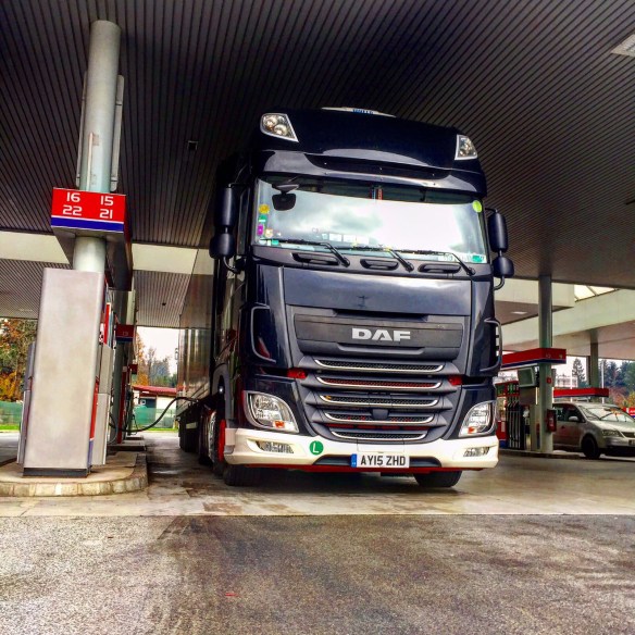 Perhaps being away on tour for months on end can take its toll on ones marbles!! If your one of the few lucky drivers to be touring Europa with a huge international band then it can be all go go go, not a lot of sleep some nights, odd days off, time to mooch about all the cities you can mention, so be prepared for anything. So if your travelling between Hungary and Italy then why not stop off in Slovenia on your way through. Just because I was stuck in the office in Ipswich on an overcast morning last week, shouldn’t make me jealous, but I was. Mat Ireland sent through these photos of the lads from Transam Trucking on a stop off and fuel stop.