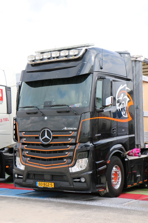 Back in July I found this delightful Actros hidden away at the end of the pit straight at the Truckstar Festival. Being me I didn’t go over and have a snoot about but on this occasion I probably should have. One thing you may not notice from my photos are the 7inch twin exhausts up the back of the cab. The truck itself is a very much a less-is-more kind of truck and is by no means over the top, much more understated. For a number of reasons I want to know how the stacks work as we all know Mercedes-Benz trucks have a large exhaust box and I’m interested to know if the exhausts can run as straight through and this then leads me to wonder what the straight 6, 630hp, 16 litre sounds like. So now you can understand the title of the blog. I’ll need my Dutch friends to help with this please. A friends from Truckstar, Marco, gave me the name and he is on Facebook but I can’t send him a friend request. I’d love to know more so if you can put me in touch with Joeri then that’s just marvellous! A great truck.