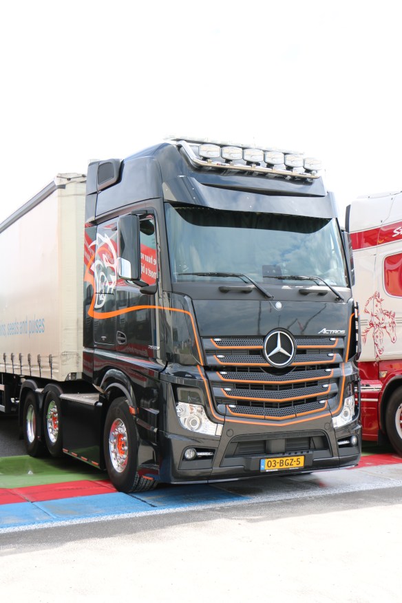 Back in July I found this delightful Actros hidden away at the end of the pit straight at the Truckstar Festival. Being me I didn’t go over and have a snoot about but on this occasion I probably should have. One thing you may not notice from my photos are the 7inch twin exhausts up the back of the cab. The truck itself is a very much a less-is-more kind of truck and is by no means over the top, much more understated. For a number of reasons I want to know how the stacks work as we all know Mercedes-Benz trucks have a large exhaust box and I’m interested to know if the exhausts can run as straight through and this then leads me to wonder what the straight 6, 630hp, 16 litre sounds like. So now you can understand the title of the blog. I’ll need my Dutch friends to help with this please. A friends from Truckstar, Marco, gave me the name and he is on Facebook but I can’t send him a friend request. I’d love to know more so if you can put me in touch with Joeri then that’s just marvellous! A great truck.