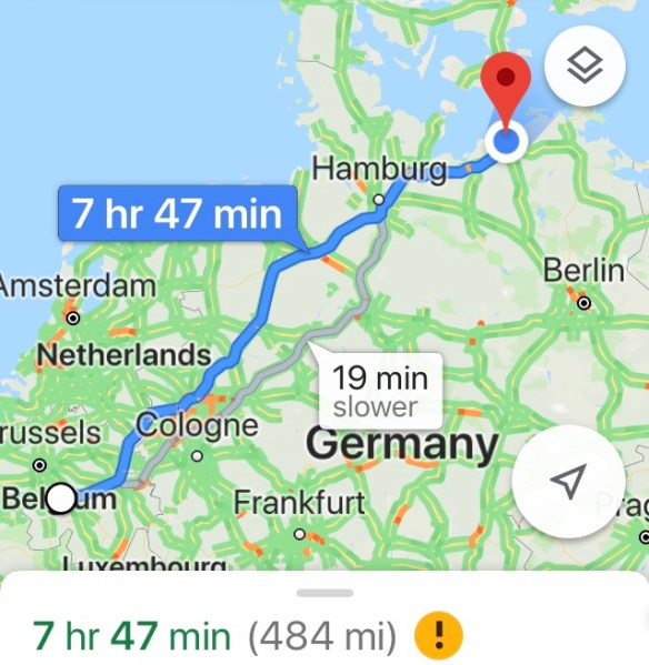I get my card back in at 1830 quick check of the load and the truck and set off for Rostock 484 miles away. As anyone doing Germany regularly will know it can make or break your delivery schedule with some of the epic traffic jams they tend to get so I’m glad I’m running through the night probably the best way to travel in Germany. I head to Liege then onto the border at Aachen where I stop for 15 minutes for the mandatory brockwürst mit brothen and a großr kaffe and crack on.