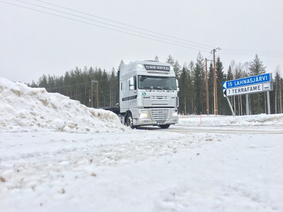 I’ve been getting a lot of flashes and a wave or a thumbs up from a lot of the Finnish trucks which I wonder if it’s because of the truck. There aren’t a lot of DAF’s here and any you do see are white beaten up eastern block motors. Maybe it’s because they’re spotting the GB plates which I’d assume is a very rare site up hear too, especially in the north. (There’s the possibility they follow Truckblog and it’s like seeing a celebrity! But if that was the case I doubt I’d be getting a thumbs up more likely a p*** off! 😂) – ((of course they follow TB!! – TB))