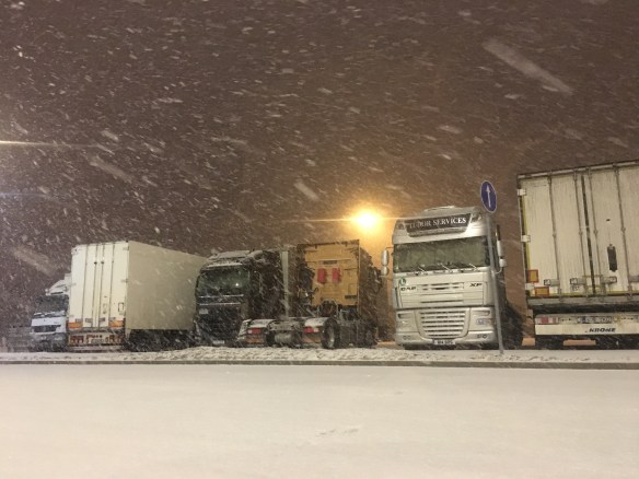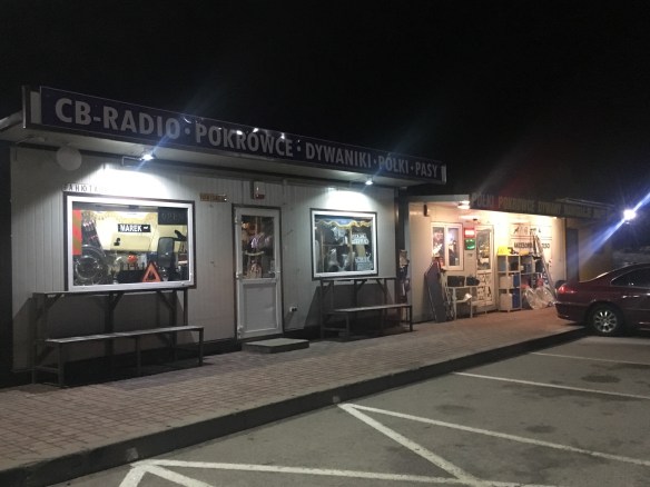 Then I head south on the A1 towards Riga running right along the coast of the Baltic Sea. Next stop is the Lithuanian border where I stop and fuel up and get my road tax once again. I set off on the A10 heading towards Kaunas then on towards Poland, as I’m pulling out of the garage the snow is back! I get to a place called Jeziokri just over the border and park up for the night in a TIR park have a bit of tea in the restaurant and a quick look around the truck store at all the toys before getting back in the truck to go to bed and you guessed it, it’s snowing again so looks as if this weather is going to be following me back to the UK I think.
