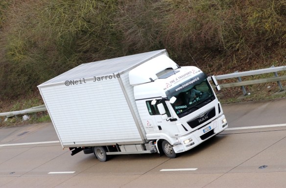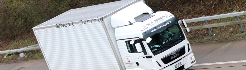 Neil sent me the above photo after his first visit to his beloved bridge for some time. This was two weeks ago today, so the little Italian MAN in focus is still a regular visitor to the UK. What a great photo and what a cracking little camion. This Italian company having been coming to the UK for a number of years now as Neil has sent me photos of this truck and others on the fleet before.