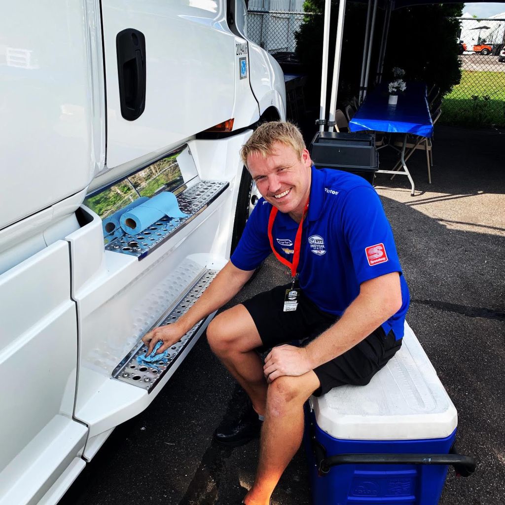 The next day at the track we get our duties over with a lot quicker than we’d like, then go for a walk to see the sights. As you can imagine with the size of an Indy Car event, there are loads and loads of different trucks and vehicles. Race teams the world over use high spec, top quality trucks and Indy Car is of course no different, some may even say these are better than the rest! Big trucks, big paint jobs but still a few oddments. Just when you think you have seen an amazing cross section of US trucks, you come across a Ford Cargo!