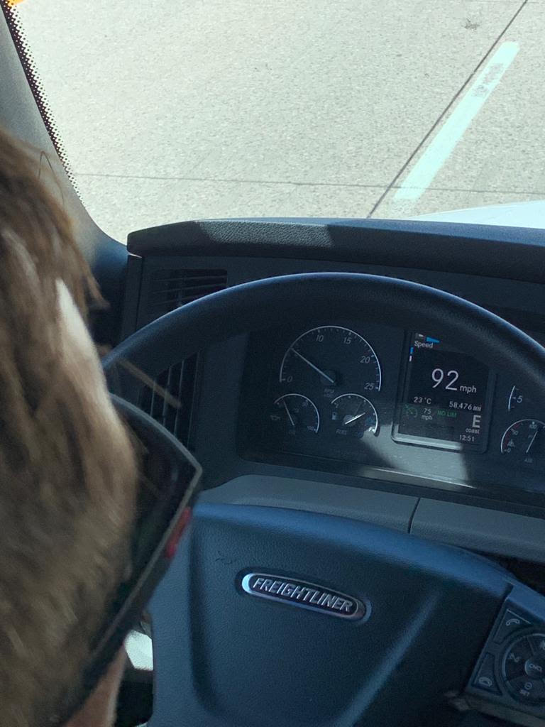 Most of the roads are straight flat and there isn’t much to look at so it’s necessary for the trucks to be able to do the same speed as cars as 56mph would be torture. The drawback is that it’s a lot more tiring as your always on it, trying to pass some or being held up by someone albeit not much as the car drivers in America get a move on as well unlike home! You’re not likely to encounter many people dawdling along in the middle lane at 50mph and if you do there doesn’t seem to be any rule against just undertaking them. In most places you can just use lane 3 in a truck anyway. As a result after 11 hours (which you can do every day of the week!) driving you do feel properly f**ked you can see why some drivers here feel to use amphetamines to stay awake when driving. As for the speed it work’s for the reasons mentioned and because of how the trucks are designed with the double drive bogies and axles on the back end of the trailers, they are surprisingly stable when tanking along at 75mph or even 92mph which I reached (accidentally honest) at one point.