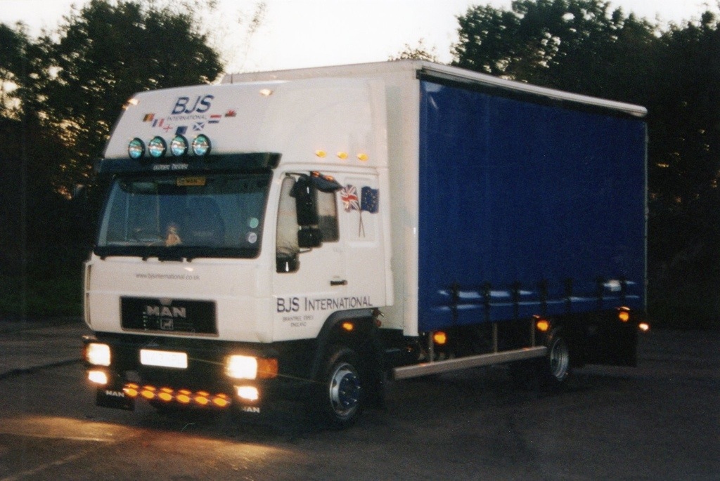 Have you ever wondered about having a bit of a customised truck? Something with a bit more than just a coat of white paint? Yea I did too once, but I wouldn’t do it again. Really I wouldn’t. I was doing well with my company and I doubled the fleet size to 2 trucks! I wanted to have the shiny wheeled slightly customised truck so it would stand out from the crowd. It started with the plain white Mercedes Atego that you see above. I spotted it on the A12 on my way back to Braintree one day. It was on it’s way from the dock to the bodybuilders, Colliers Truck Builders of Maldon (Essex) on the back of a Brit European truck. As it goes I went back and found the truck parked up for the night near Maldon, the driver let me even climb up and sit in it!