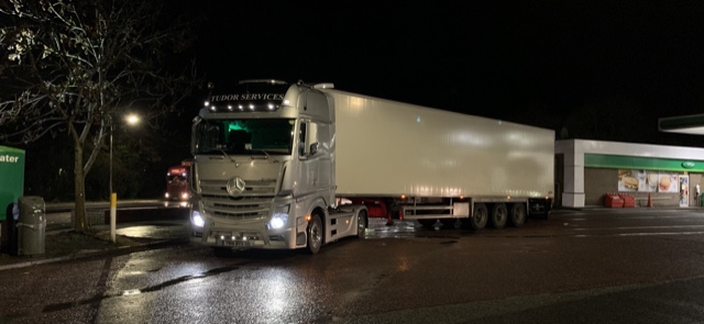 I get to spend the morning with my girlfriend and daughter taking her to visit Father Christmas which was a nice bonus getting to do that before going back to work over the weekend. At 1830 I am back in the yard ready to head to Leigh Delamere services to meet Pete who has loaded the trailer for me with one of his trucks and take it off of him to head on down to Portsmouth ready to catch the 0800 crossing in the morning.