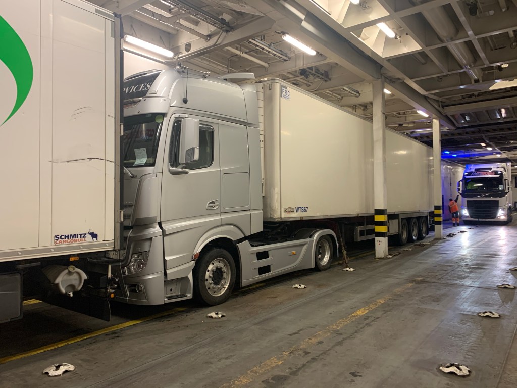 Sat at our yard in Bristol patiently waiting for the clock to hit 1508 when my weekly rest is up and I can set off for Padborg in Denmark to check out some trailers I want to buy up there. Once my break is complete I set off solo to Harwich for the 2100 boat to Rotterdam the sat nav tells me it’s 4 hours 30 minutes to the port. I’m going to need to make it in one hit as there isn’t time for a 45 minute break on route. Predictably I get on the M4 and there are closures from J8 to J6. I’m feeling up against it but luckily enough I make good time anyway and arrive at the port at 1955 and check in. What I didn’t realise when I booked this crossing was that it’s a freighter which was a disappointment as I’d been looking forward to a nice draft pint and a good feed once aboard. Also I paid the same price as it would have been on the Hook of Holland boat so lesson learned there for next time! Still there’s always the Autohof tomorrow to look forward to.