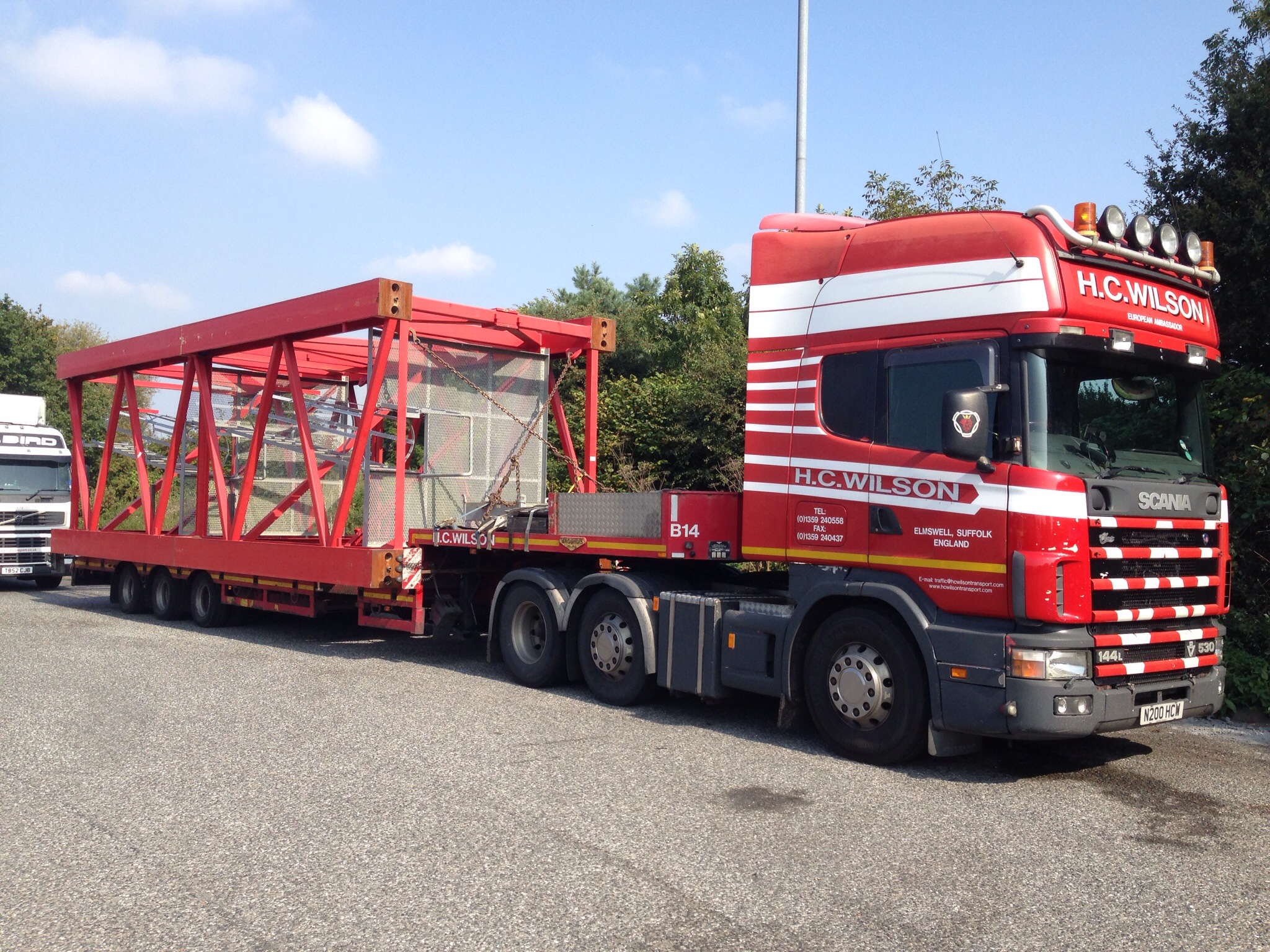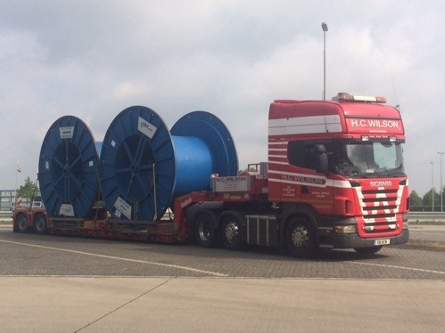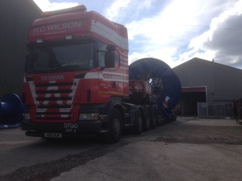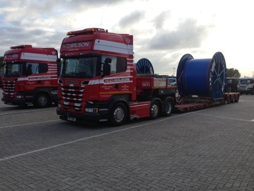 N50HCW loaded with a 4.2m wide cable drum heading for Felixstowe. Photo taken by Sully, Wilsons escort driver, the truck is driven by Graham Daniel.