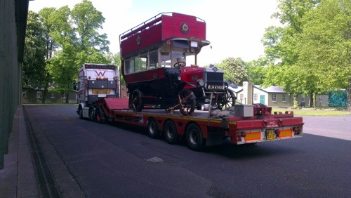 A firm spotters favourite, WIL2217 and driver Matt Lamb with a historical load this week. A 1914 London bus delivered at 2am this morning to Londons Transport Museam.