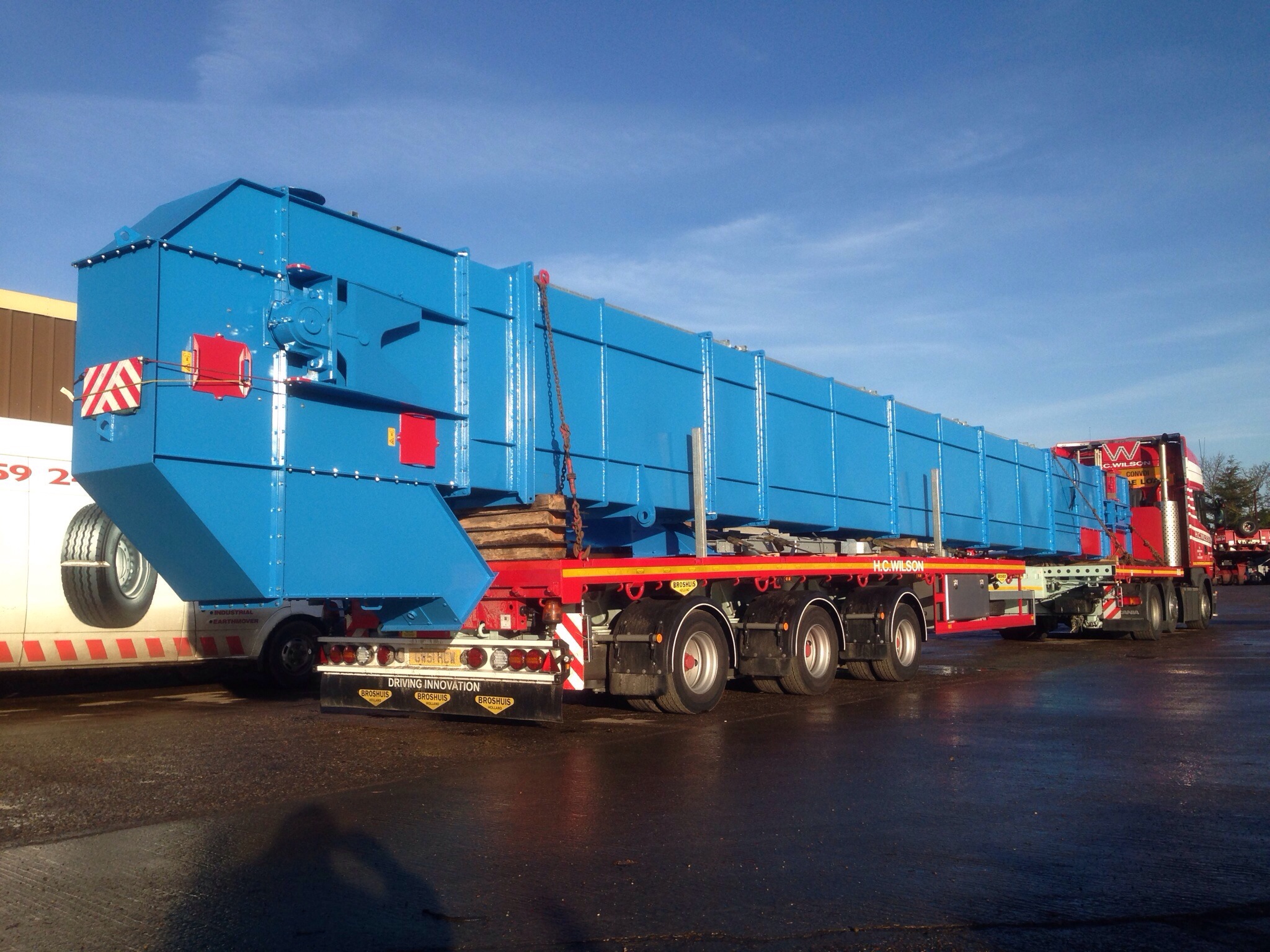 Escort driver Sully sent the photo below in today. Three of the Wilson trucks loaded here in Immingham heading to Lesmahagow, Scotland. All loads over length and over width.