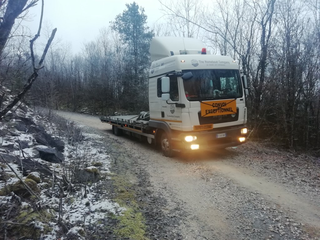 Once into Italy, time was ticking for Marshy to take a weekend break. Having got most of the way down towards Subbiano in Tuscany, Steve parked up Saturday afternoon in the last services before the delivery point to take a well earned rest through to Monday morning. Up and away Monday to Subbiano, tip the transformer housing off for testing and then straight on to the reload. What a nice little reload it was! So a little empty running from Subbiano upto Comezzano-Cizzago near Brescia, just the 246 miles, to reload a small aeroplane back to the UK, loading Monday evening.