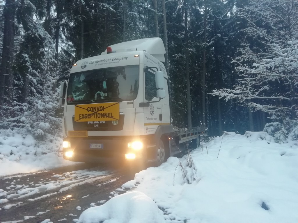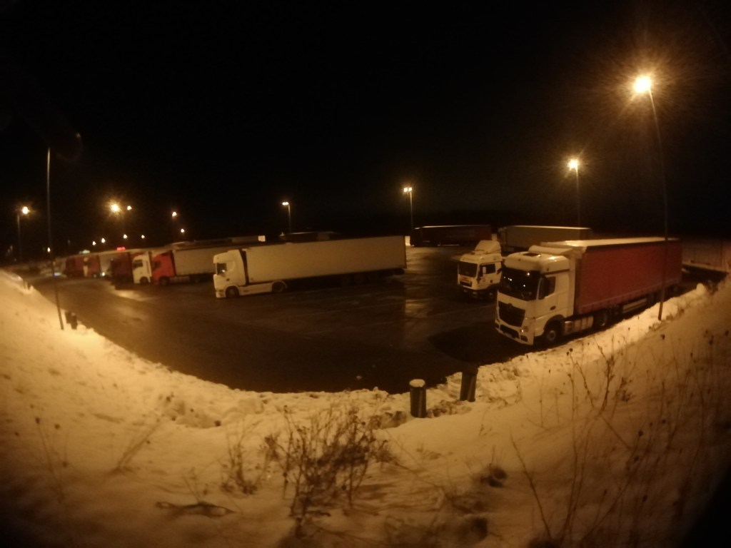 Sunday 10th January – Its a half past 4 start on a Sunday, but i’ve only just over 600km to do, so it wont be a particularly strenuous day. 1H30 drive down, I top up the tanks again, plus remember to fill the separate night heater tank this time, its been working over time the last few nights! Onwards and up to Berlin, then east across the border into Poland at Frankfurt-Oder, never any police or problems here. 20Km along the A2, a quick interval for a ticket at the toll booth, then onto the hugely uninteresting drive to Poznan. A little snow in the air again, but solid KM covered, I head north after Poznan on the S5 and stop at Marathon Int. Transport for a final diesel top up, then just 1hr30 left up to Bydgoszcz. A little detour for the new motorway roadworks and I’m outside the boatyard nice and comfortably at 13:30. I Start my 24h rest and immediately set about changing the drivers front wheel as a previous small crack in the alloy has developed into a crack across two of the wheel nuts! Its a quick 30 minute job with the use of a long bar, it takes longer to get the spare wheel off its hanger! I stay put for the evening, cook some more dinner, a few cans and an early night ready for loading in the morning. 662Km, 7h48 drive today.