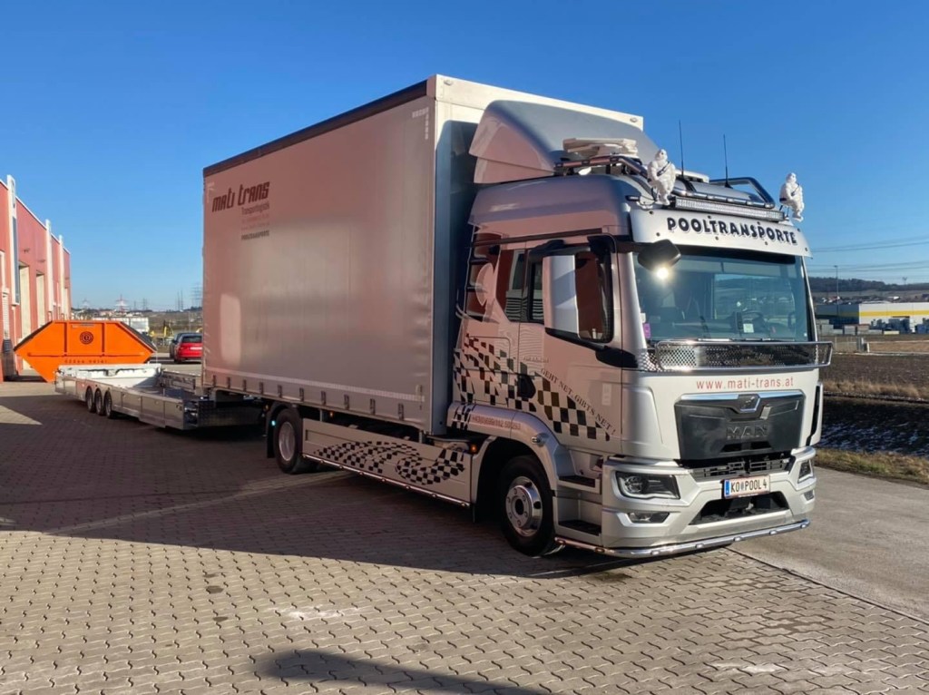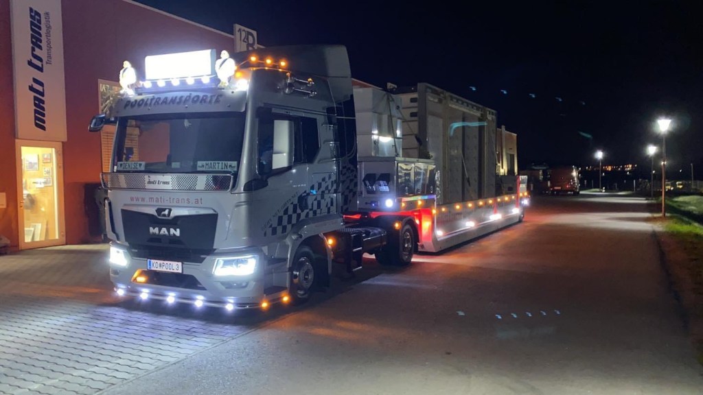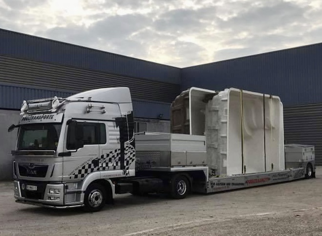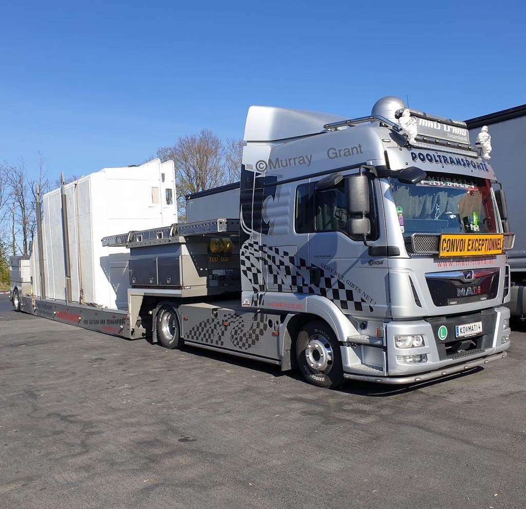 Having looked then up on the internet and found they have a Facebook page, Click HERE, looking through the photos and reading the info, the Austrian company do what they say, Pooltransporte. Borders are no boundaries it would seem for a quality swimming pool and with a decent array of trucks, trailers and plenty of mini artics, you can have your new pool delivered anywhere in style.