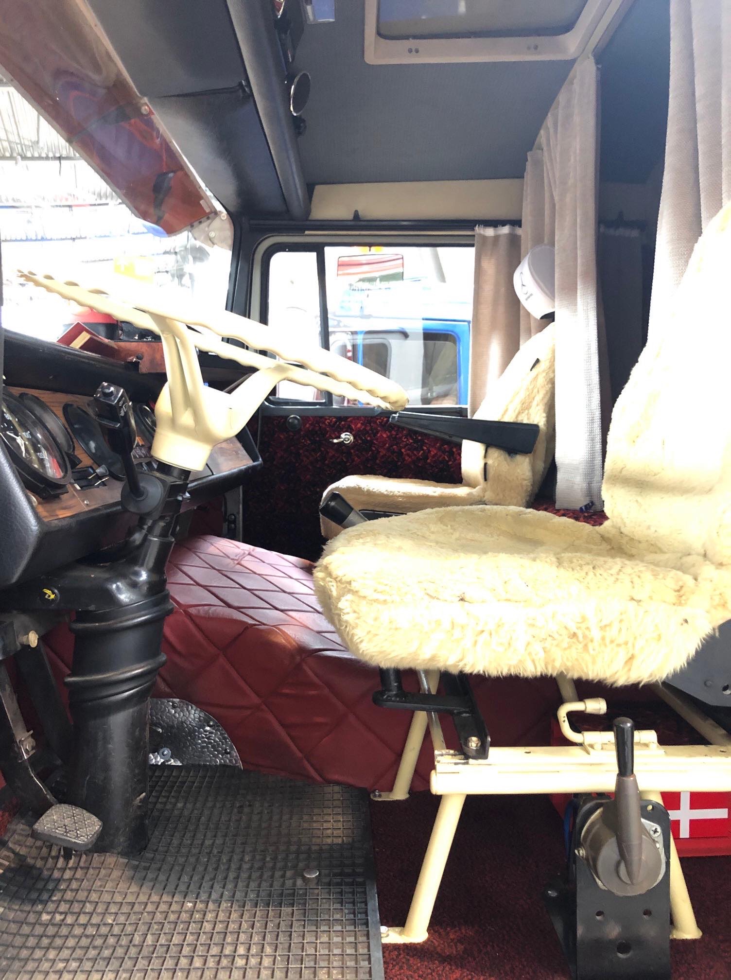 “After a lengthy restoration converting the old fire truck the finished article is simply stunning. The theme of the LP is Denmark; there is red and black patterned material on the rear wall and on the mattress, the engine tunnel is upholstered in red man-made leather and there is fur on the seats. The rear wall also contains a lampshade bought from a flea market, all of which lends character to the cab. On the exterior, fire engine red is combined with green along with a ‘Danmark’ illuminated sign on the roof. This LP is truly one of a kind and is exactly the type of lorry I would love to add to my collection – long live the true ‘retro classics’!”