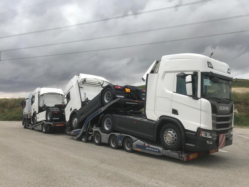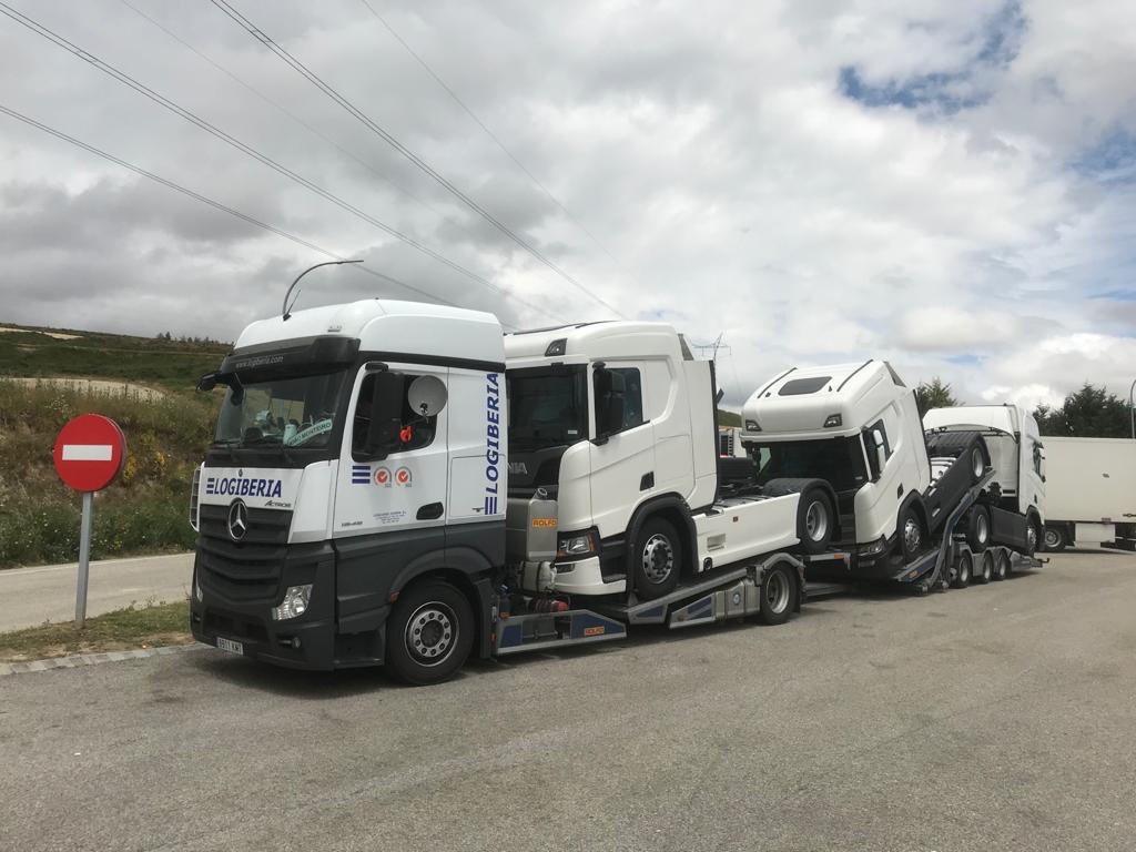 Anyway just a quick blog, in times of lock down, nothing like a couple of photos of a truly European set up with this trucksporter. Three new Swedish Scania’s made in French France, on the way to Portuguese Portugal, loaded on a Spanish based German made Mercedes-Benz, with an Italian built body. Any guesses on the nationality of the driver?? Mr Wilson took the photo on Thursday on a quick stop on the A1 near Burgos.