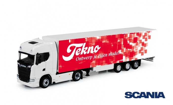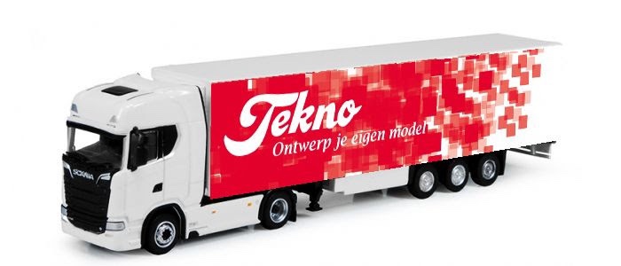 The truck designer is not to be missed in the menu bar in the webshop or can be reached via this link: tekno.nl/truck-designer.html. After you have given your creative mind free rein and we have received your order, your unique, self-designed print will be applied to the miniature model by hand by employees of the Tekno team in De Lier, The Netherlands.
