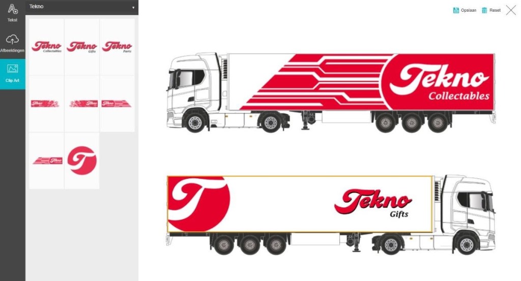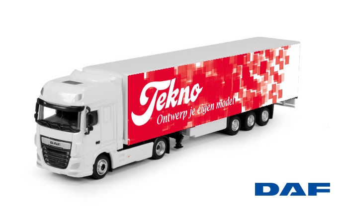 Personalize a miniature model? That is now possible! Tekno Gifts – part of Tekno Collectables – launches a special tool in the webshop that allows you to create and order the trailer of a blank miniature model completely according to your own design.