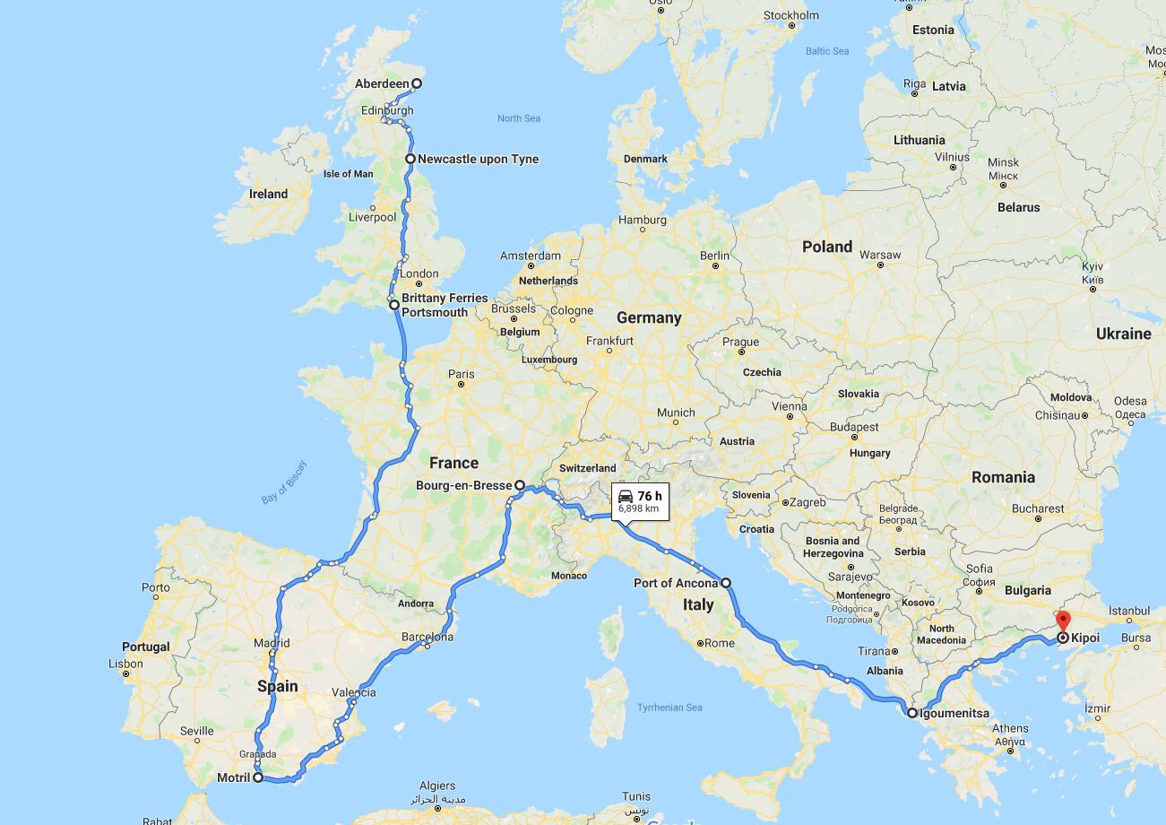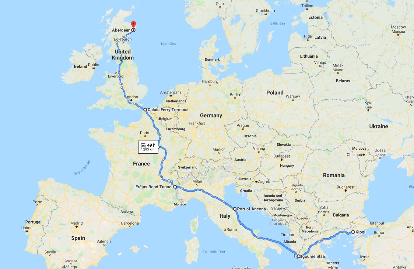 Reload details are through and it’s time to head back across Greece to Igoumenitsa for the same ferry back to Italy (ignore the map for this bit again!) Once off the boat, it’s reload in Ancona itself and then northbound and down. A full load of pipes destined for………. Aberdeen. The whole way round Europe and reload back to your home town. Awesome. Perhaps a little easier as an awful lot of oil related work comes in and out of Aberdeen, but even so, that must have been nice to hear for our man Stan. I’m sure the big