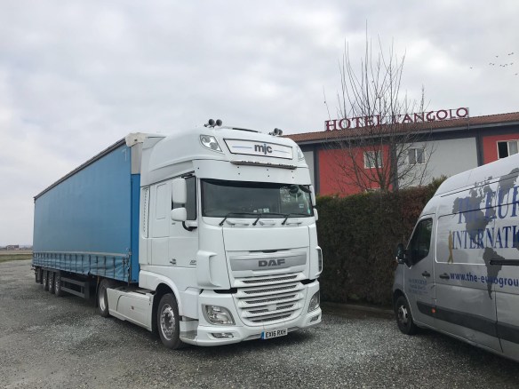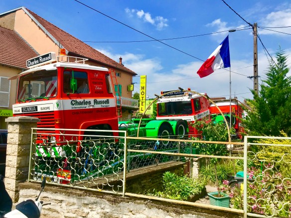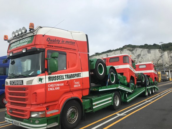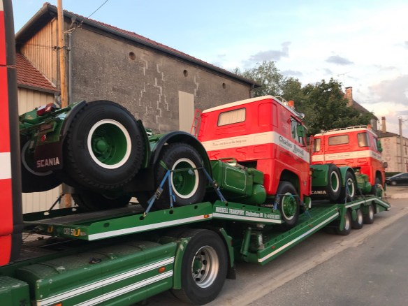 So there I was on Wednesday in his yard loading probably the most precious cargo I’d ever transported. Leaving early, very early 03.15 am  the next morning I left Coombe Hill, bound for Dover. Leaving that early meant I could reach Dover and park in the lanes in my 4.5 driving spread. A most welcome breakfast courtesy of P&O settled the butterflies in my stomach. A steady run to Reims where I took my next break before cruising along the RN4 to Perthe where I parked up for the night. I shared my table with two drivers from Strauman Heavy Transport from Colmar who were most taken with the 140/141 on the trailer. In fact they were constantly being photographed and videoed along the route.