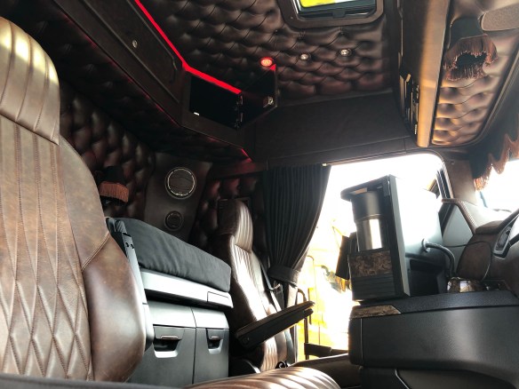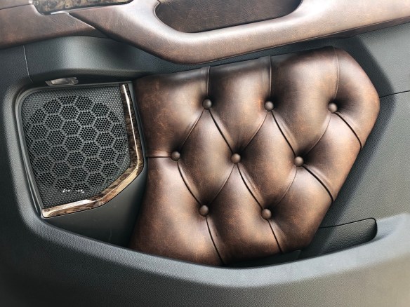 The amazing interior is quite natural? It’s not over the top, just deep brown leather much like a classic luxury car, brown switches and sumptuous brown leather seats and button leather panels, all of which adorn the cab in a completely non-invasive way. Once again Special Interior from Holland have worked a little piece of magic into this one which complements the rest of the truck perfectly. I know it’s a far cry from being a standard motor but it certainly isn’t in any way in your face, I could see myself doing a days work in it at least!