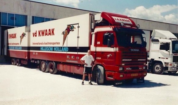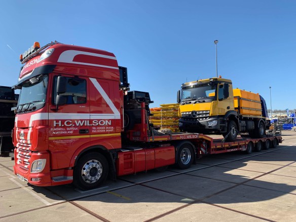 Finally in our teaser is the 2nd new DAF, driven by Ian “Slim” Godfrey. Once again another driver who has been at Wilson’s for 15+ years. It must say something about the job or the company when you have so many long service employees on one fleet. I have to say I didn’t get any load details on this one but I’m happy to publish such a great looking load! loaded from NL to Bristol. Apparently an airport sprayer. With the two new DAF’s having only been on the fleet for a few months there has been lots of talk about the new diagonal stripe from the back of the cab to the top corner of the window. Any thoughts???