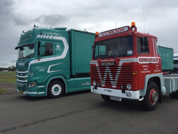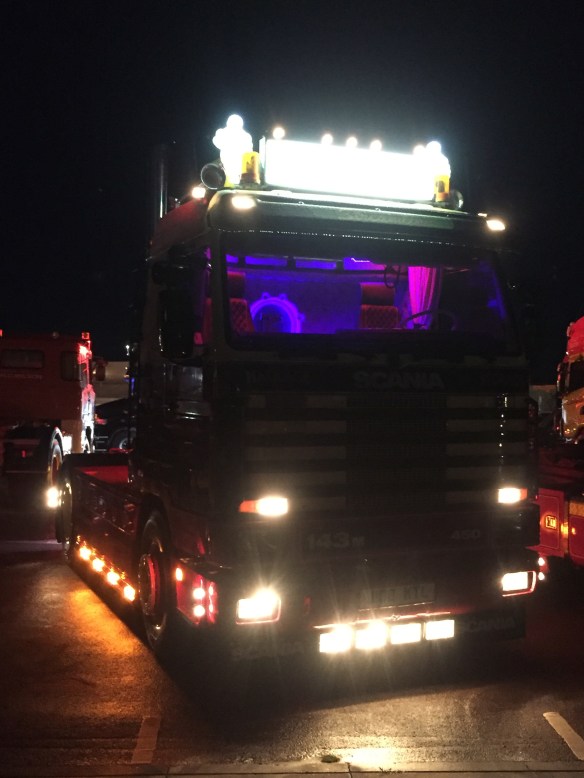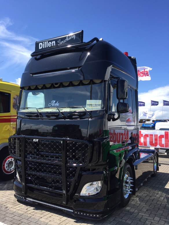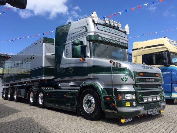 You will have noticed I’ve been very quiet since the last weekend of July. It just so happens the last weekend of July is the biggest and best truckshow (in my opinion) in Europe – Truckstar Festival. When you get off the ferry in Hoek early and have a good run up through the Netherlands to the TT Circuit at Assen. It’s taken me this long to recover in all respects, so I’m ready to share. When you arrive at the show to check in and the above new Scania pulls up along side, you know it’s going to be a good weekend! Just a note both Scania’s are top of the range for their time. Nearly 40 years apart there is a huge difference between the two, but good to see them side by side to compare. Having checked in and moved on into the oldtimer section in the pit area of the circuit, we are greeted by this DAF 3600. Newly and fully restored truck and trailer, when this is the first truck you see in the oldtimers you know it’s going to be a good weekend! I’ve never got to close to one of these very popular old DAF’s, but although the fridge trailer is now all wooden floors, plush bedrooms and a gorgeous kitchen suitable for any Michelin star chef, the interiour of the cabine was brilliant. I’d never realised there was quite so much space in the first Space Cab. It would pass as a decent twin sleeper today, let alone 30 years ago. The one thing that caught my eye was the gearstick standing in the side of the drivers footwell, not on the engine tunnel. Compared to the 3600 DAF, there were plenty of newborn DAF’s with simple but stunning paint jobs. Perhaps the big DAF cab warrants a “less is more” paint scheme?? The purple on this truck was amazing, it gave lots of different shades depending on the intermittent sun, but overall just stunning. Then further round the show truck area was another “less is more” stunner. The black was just black. If you get annoyed that you can’t get a simple straight red or green as there can be too much choice then this was the opposite. If you just was gloss black then this was it. It’s just black. A few simple accessories such as the American influenced wheel nut covers, then this truck is the ultimate definition of “less is definatley more”. One thing you notice when you get to Assen is that the Dutch are ridiculously friendly and secondly it’s a truck show. It’s not anything else, it’s trucks, owned and operated by truck people, on show for truck people. If you’ve not been, I say it every trip, you’ve got to get yourself along. I’ll leave this blog with a selection of other finds from the first few hours at the show. When you see all these trucks in the first afternoon, you know it’s going to be a good weekend! More to come another day dear readers. I’m off for a lie down.