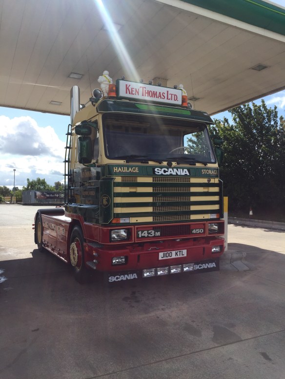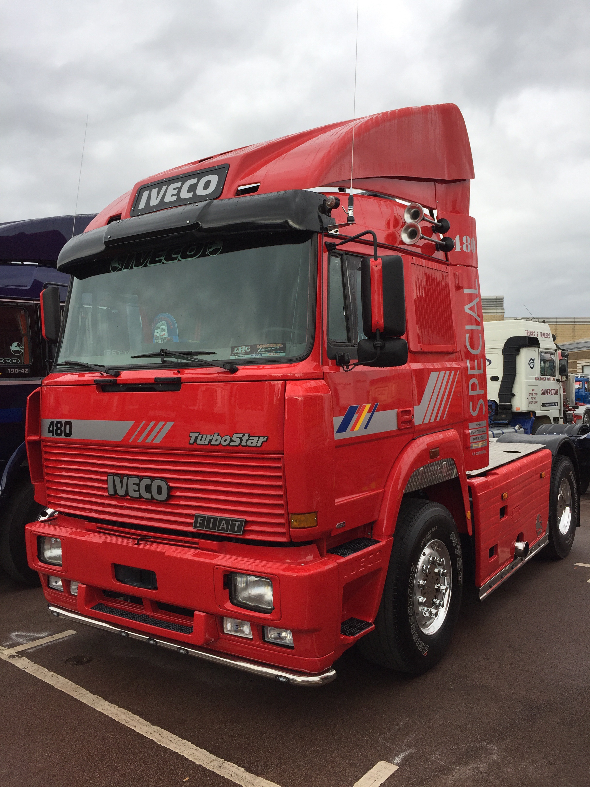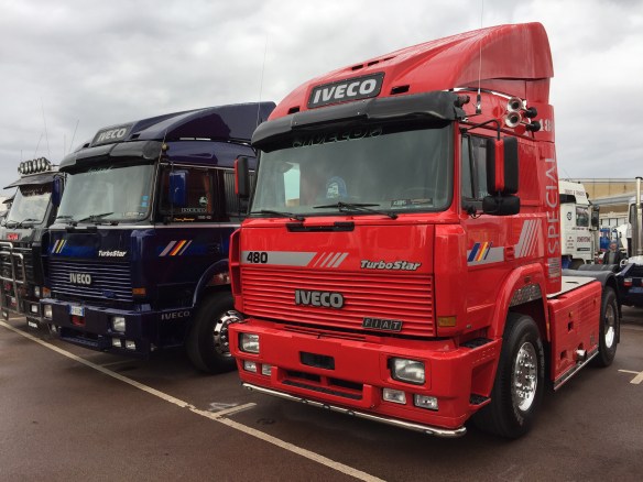 Last year blog readers voted Lee Herbert’s Retro Truck Show as their show of the year and I think it could well be in the running again this year. A small show with bags of quality, plenty of trucks and enough truck enthusiasts to sink a battleship. The one thing this show seems to attract is proper truck nuts, those who know their trucks and those who don’t want tons of commercialism. If you like trucks and you like looking at and talking trucks from the golden years then this is the show you need to put in your diary for 2018. Quite often it would seem that all the retro trucks are Scania’s as they seem to have lasted and are obviously very popular. This year there was definately a few more Scania’s but what was very noticeable was the increase in all other marques. Plenty more Volvo’s, DAF’s and of course the rebirth of the original Italian Stallion, the Iveco Turbostar. What can you say about them?? They have a reputation as a flying machine with their monsterous 17 litre, V8 engine and getting up close they do give a feeling that they just want to fly! You could have taken your pick from black, blue or red and they were all in full “Iveco Special” livery. Even though I’m not a lover of red, the red one just looked the business in my book. Perfecto!As I mentioned earlier there were a number of other marques that haven’t been at the show in the last few years and it seems a wider variety of trucks are now being saved from the rust devils. Bedford, DAF, Ford, MAN loads of  ERF and a few others. All the trucks at this years show bought back many memories for all I’m sure and this is really the essence of the show. In the least geeky way possible this really is an enthusiasts show. For me the highlight of being there is meeting the people who lived and worked through the golden years. I could listen to drivers stories for ever. The images that are conjured up in my mind can’t be far from the truth and it just makes me wish I was 20 years older!! Ex Middle East stories, Astran stories, Ralph Davies stories (someone needs to write an RD book!), Scottish stories, Irish flyer stories and of course good old English stories. It’s a weekend of talking and enjoying each other’s company even if the weather tried it’s best to ruin it, although I’m pleased to say without success. One thing I must add is that this year I took my first truck to the show and what a truck it was. I was privileged and honoured to be asked if I would take the delightful new Scania 143 of Ken Thomas to the show. Truck owner one John Thomas (son of Ken) was due to go to a road run with some other trucks so asked if I wanted to take the 143 on its first UK truck show outing. How could I resist. Much like a kid in a sweet shop is how I managed. The truck is a dream to drive and the paintwork, well what can I say. More than anything, everyone made a comment on how good the paintwork is. A full custom leather interiour finishes the truck off. I would personally like to thank John for trusting me with his new pride and joy and I will happily volunteer for more Show duties if needed. Thanks John. As for the rest, please click HERE to see the other photos I took. Just to many good trucks to put on here and all a credit to their owners and restorers. One thing I like more than anything about restored trucks is the provenance some of them come with. By this I mean there are just a few ricks at the show that have lived the life and been there and definately done it more than others. To see these trucks at the show is awesome and just proves that UK truckers were and still are the best in the business, well the true core drivers are! There were a Ralph Davies Volvo and Scania at the show and to sit in the Scania and just think where they have been to and returned from year in and year out is mind blowing. As for the Astran Volvo, still in working condition but who cares! She’s lived the life and deserves to be a little scruffy round the edges, although Karl does say she’ll get a little touch up sooner or later.That’s it for another year and I will defo be back in 2018. Whether I have a truck to take or not is another matter, but I suggest every one of you put it in your diaries. True truckers will be there enjoying what’s left of drivers cammoraderie and talking about the trucks that gave the UK it’s pioneering name in road transport. Well done Lee and team, excellent show. May be, just may be Truck Show of the year 2017??!
