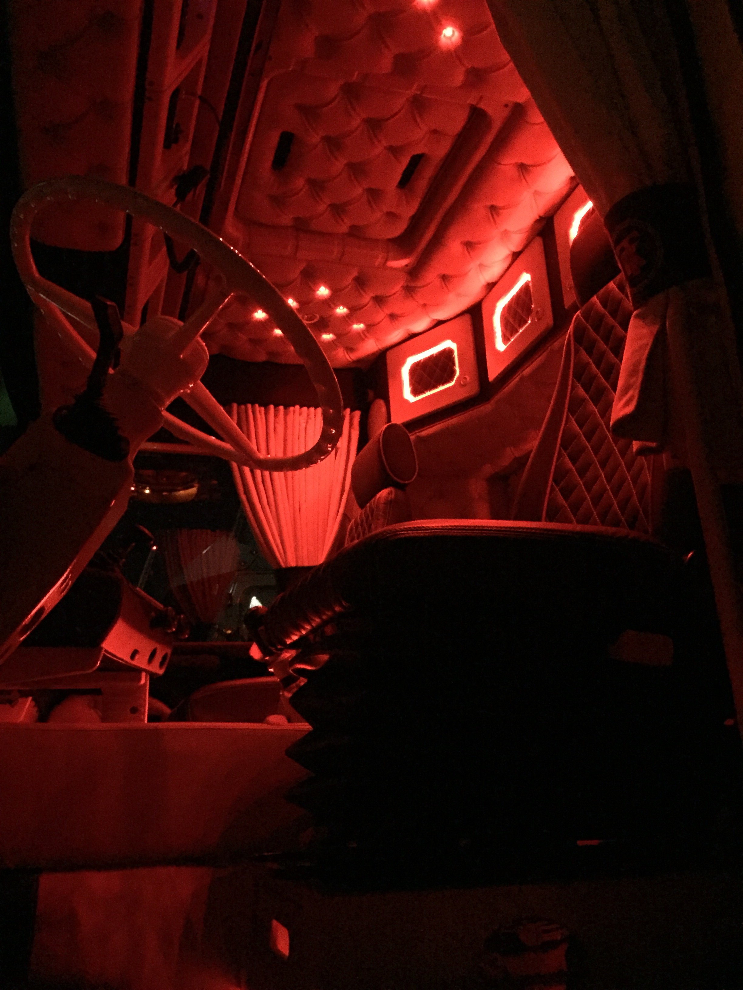 It probably helps that it isn’t an S-Line cab, flat tops are the coolest. Roof rack, air horns and exhaust stacks are all painted black and red. As I say the beauty is in the detail. Both on the exhausts and horns, the inside of the pipes are painted red with black outers. Headboard, beer crate and I love a pair of 2/3 Series side light stalks. A slightly deeper sun visor, Swedish style running lights and all these coated in deep, flat grey paint with subtle red pinstripes. I’m not sure an “understated custom truck” is possible as it’s an oxymoron in my book but now the less the Dutch can achieve most things in custom trucks.