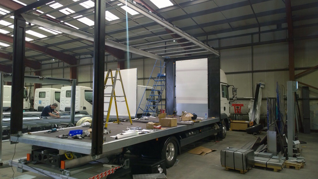 Your favourite international express light haulage expert, Steve Marsh Express, has been a little quiet of late I know but that’s partially down to the fact there is a new vehicle in production as a replacement for the little legend that is GB05 STE. The new truck is another MAN TGL 12.250 with a euroliner body. The truck has been fitted with a Kuda high roof cab conversion as Marshy likes maximum space in the cab, due to being rather a tall man and also sometimes he can be away for a couple of weeks at a time. As you’d expect for any owner driver machine it is a top of the range machine. A nice set of factory fit Speedline alloy wheels, twin long range fuel tanks, built in TV aerial, a nice sun visor with a pair of spot lights in, Dhollandia slider tailift, 12 speed auto with manual overide, rear air suspension, sleeping well cab cooler, xenon headlights, plenty of extras!! The visor also came from Kuda but was made by a firm from Finland by the name of www.vepro.fi it’s worth a look. No doubt we will be seeing a lot of this truck in the future.