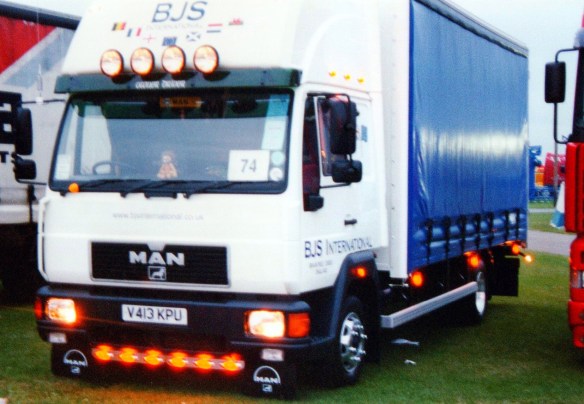 On a daily basis with anything between 15-20 deliveries and collections. What a way to learn my way about (no Sat-Navs then younger readers just a box of maps!) maps I hear you say?? Yep read THIS BLOG. I still use some of the short cuts now! A year or so later and DFDS moved to Purfleet and I didn’t follow. Local business soon started giving me work and I was soon UK wide with loads of virtually everything and anything. The poor little DAF couldn’t keep up and 2-3 years after getting her I traded her in for possibly my favourite truck from the BJS fleet, an MAN 8.163 with a Hatcher Space cab.